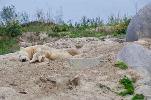 Onderstaande foto maakte Dick Scheer, de ijsberen in het dierenpark Emmen genieten van flinke droge perioden met zon.