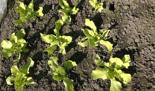 Onderstaande foto maakte Johan Effing uit Losser, ondanks de koude 22 april 2024 met vorst stonden de plantjes in zijn moestuin er nog heel aardig bij.